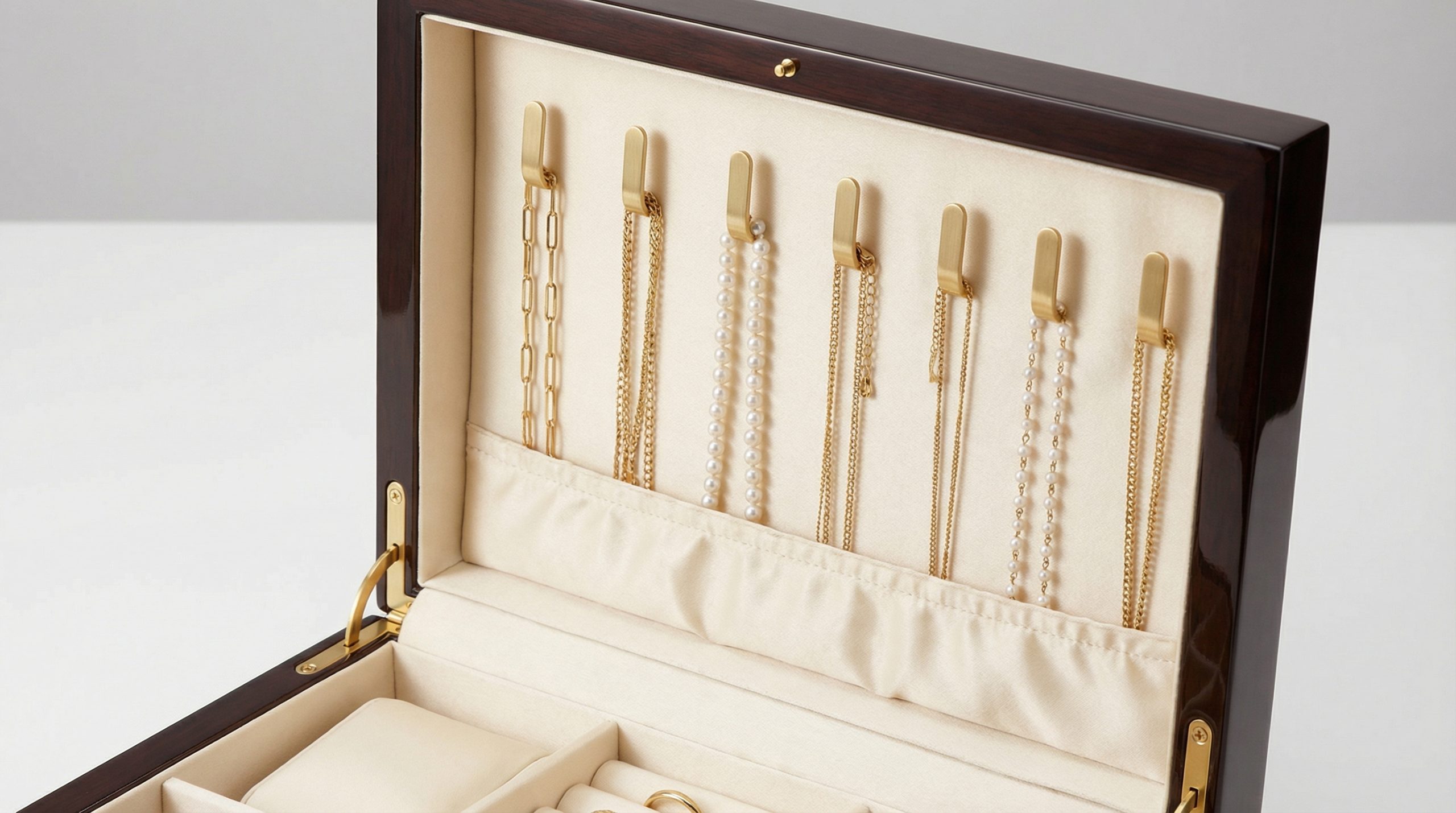 Fine chains are notoriously susceptible to knotting when stored in flat trays or drawers. The best jewelry box for necklaces utilizes vertical space to keep pendants and chains separate. By hanging each piece individually, you eliminate the friction that causes microscopic scuffs on delicate gold and silver.