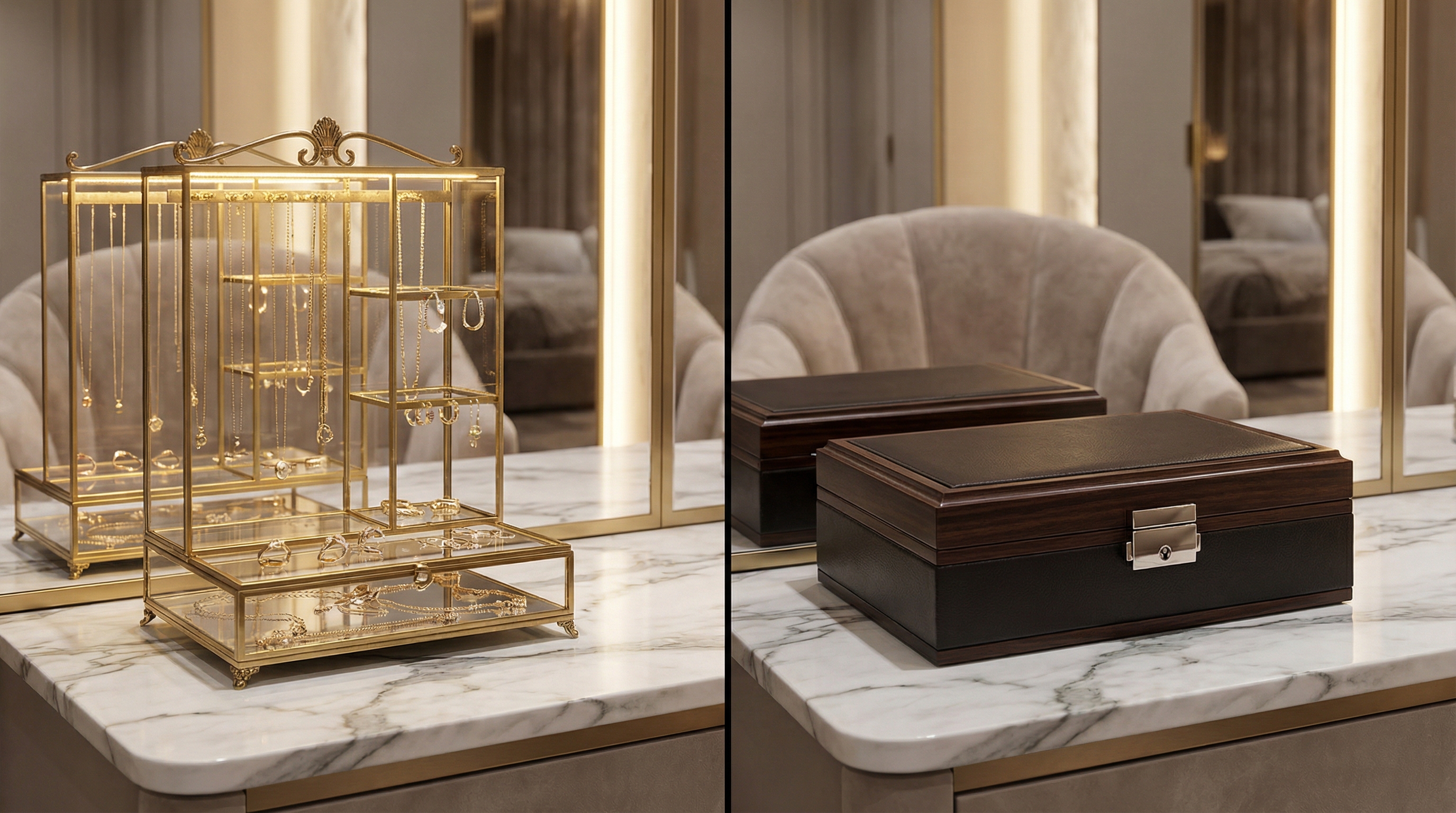 Luxury boxes often include specialized sections for every type of jewelry, from ring rolls to watch pillows. This all-in-one approach keeps your most delicate treasures organized and protected in a single, beautiful location.