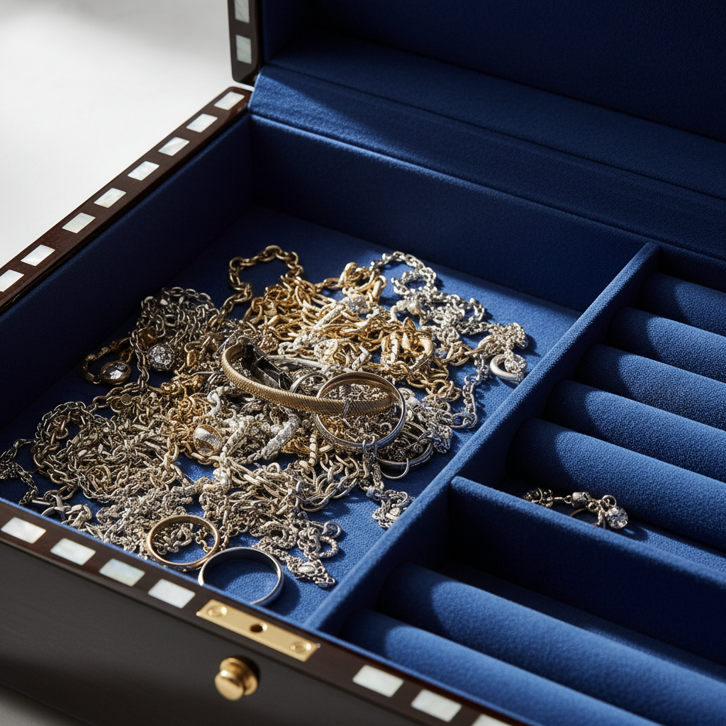 How do I know if my jewelry box needs an upgrade?If you have run out of designated zones or if chains are overlapping and creating friction, it is time to invest in a larger box or commercial inserts.