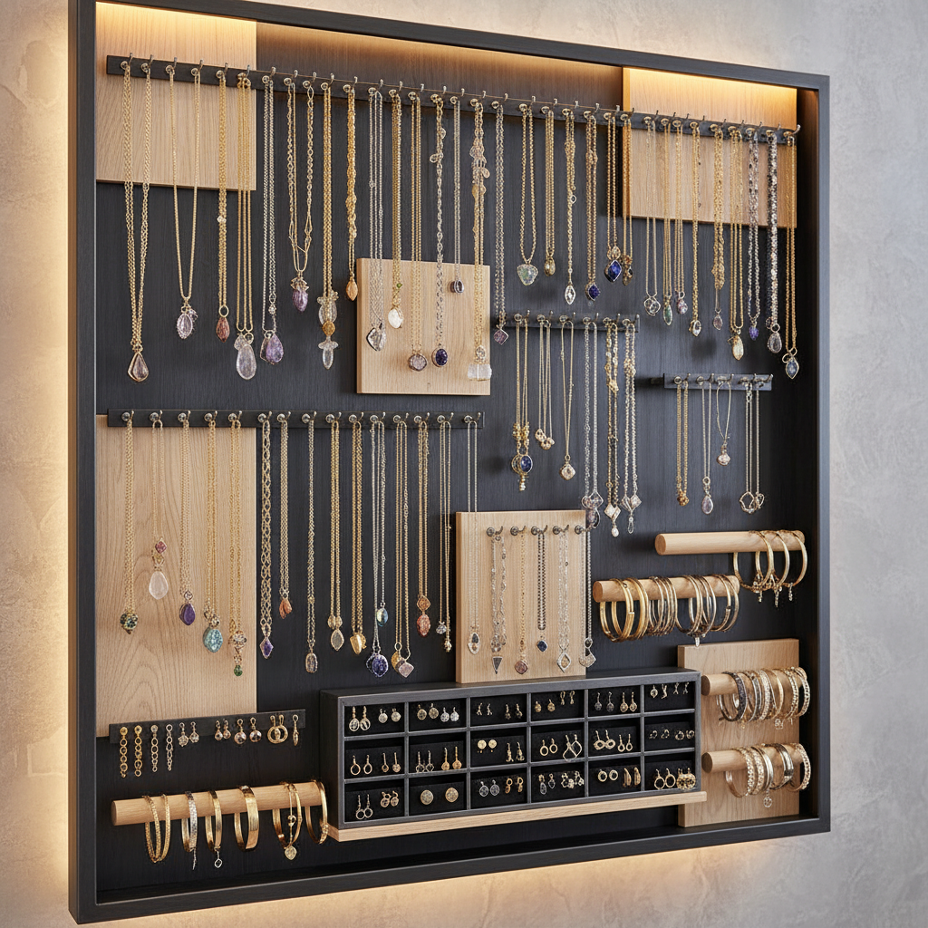 You use vertical wall hooks for lariats to utilize gravity as a natural straightener. For those wondering how do you organize necklaces in a jewelry box? while facing limited space, wall displays offer an elegant solution. Hanging long chains prevents the loops that lead to difficult knots and link distortion.