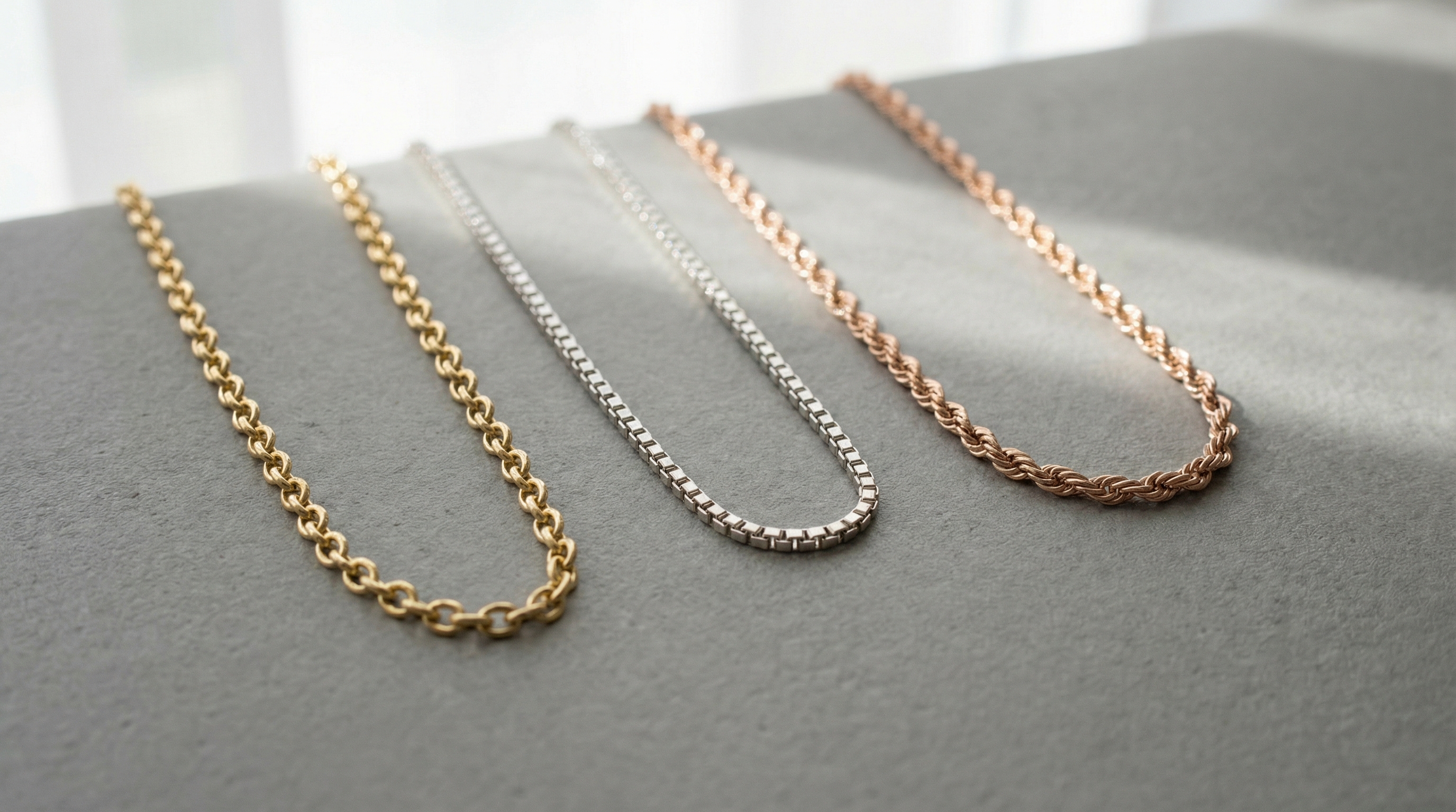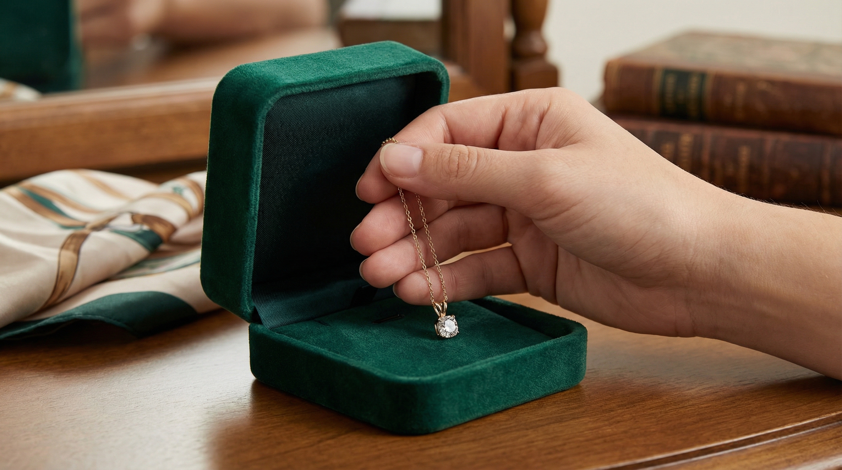 Displaying different gold colors requires contrast to highlight their specific brilliance. A deep green or black velvet necklace box can make yellow or white gold pop significantly.