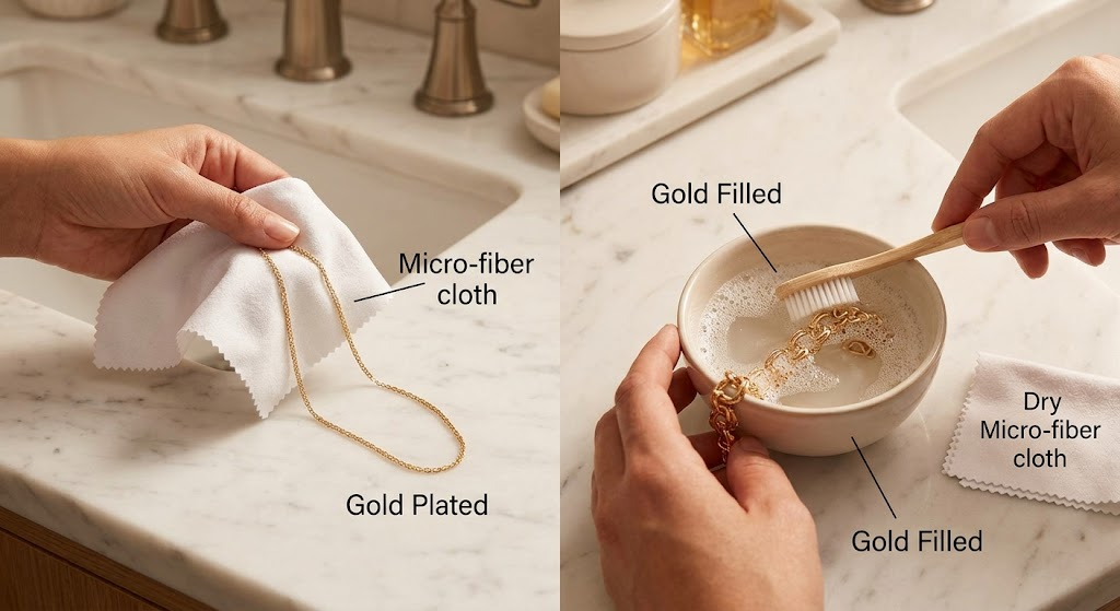 Key Takeaway: While gold fill is more resilient, both materials benefit from chemical-free cleaning and dry storage.