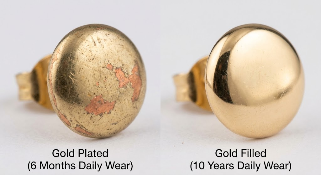 When comparing gold filled vs gold plated durability, gold filled resists tarnishing for decades while plating may wear off in months. The thickness of the gold layer is the primary defense against oxidation.