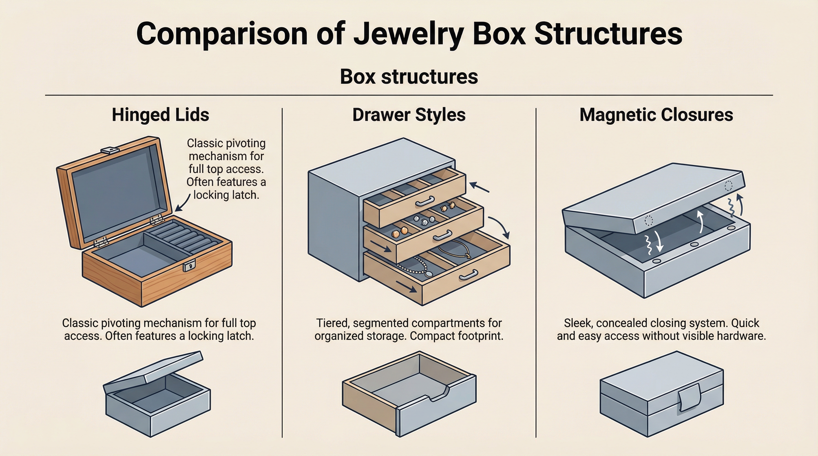 What structures work and how to choose jewelry box designs?