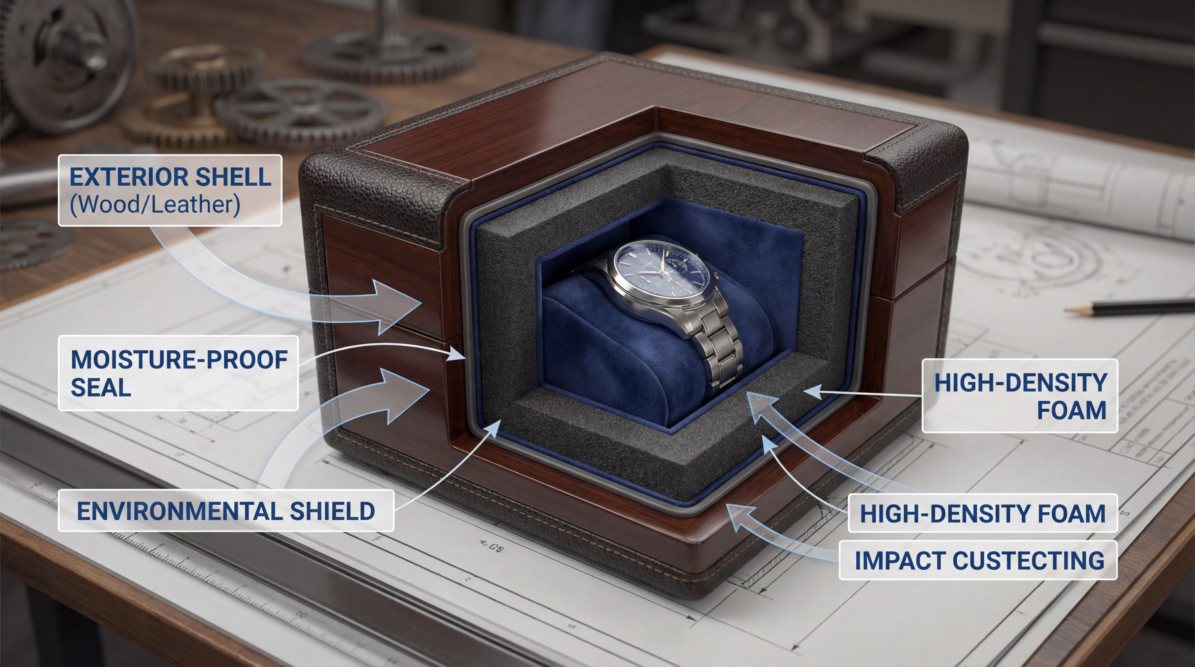 Believe it or not: Moisture is the silent killer of mechanical watches, causing rust and lubrication breakdown inside the case. A well-sealed box acts as a fortress against these invisible atmospheric threats.