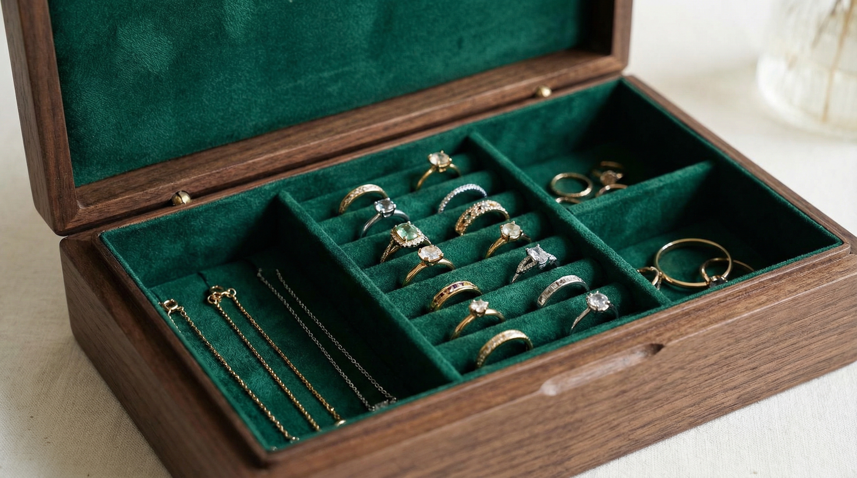 Think about it: why spend time cleaning your jewelry only to toss it into a tangled pile? Velvet or suede linings absorb minor moisture and provide a cushioned surface that prevents scuffs during movement.