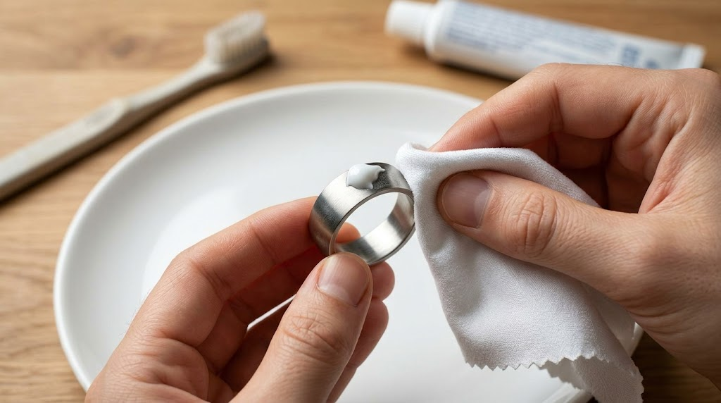 Toothpaste acts as a mild abrasive to remove tougher stains and oxidation from the metal surface. It is a highly effective method for pieces that haven’t been cleaned in a long time. Knowing how to clean stainless steel jewelry with this household staple is a great trick for deep cleaning.