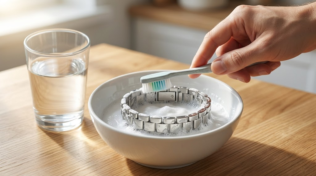 Baking soda is a natural abrasive that is perfect for how to clean stainless steel jewelry when you want a non-toxic deep clean. It reacts with residues to lift them away without the need for heavy scrubbing. It is particularly useful for restoring a high-gloss finish.