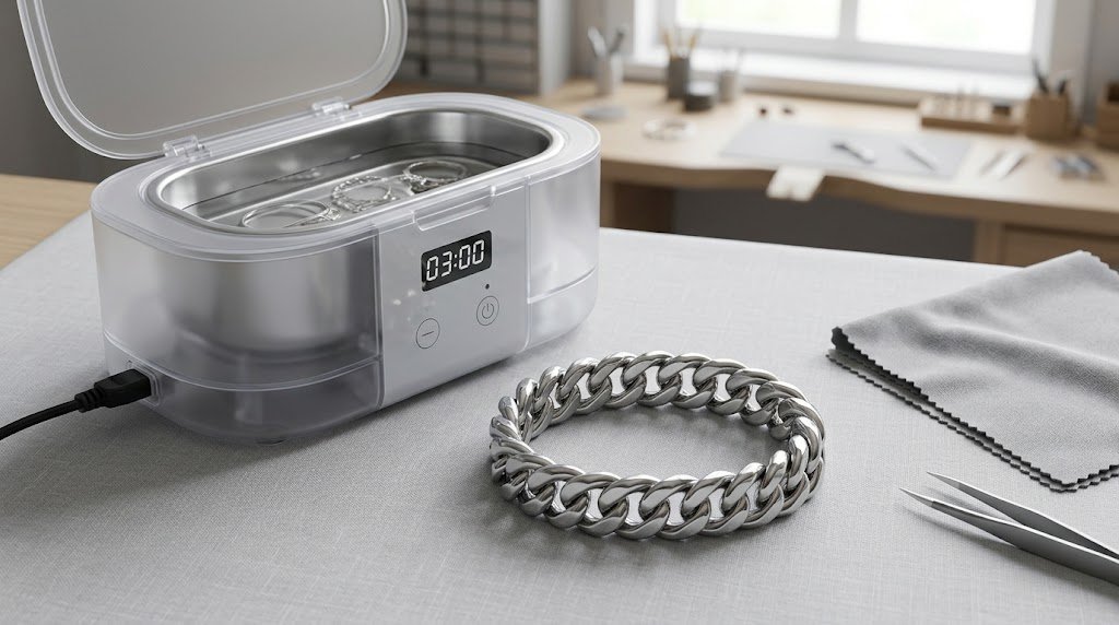 Ultrasonic cleaners are generally safe for plain stainless steel jewelry and provide a deep, automated clean. They use high-frequency sound waves to dislodge dirt from areas that brushes cannot reach. This is a professional-grade option for those handling large volumes of product.