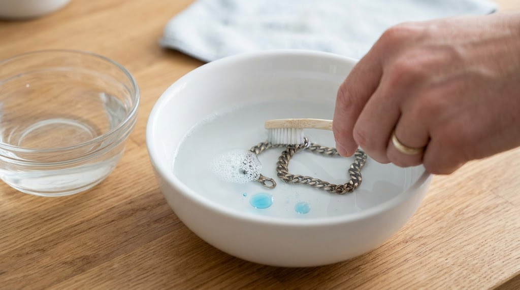 Using warm water mixed with mild dish soap is the most effective way for how to clean stainless steel jewelry without risking chemical damage. This method emulsifies oils and lifts surface dirt easily. It is the gentlest approach for routine upkeep.