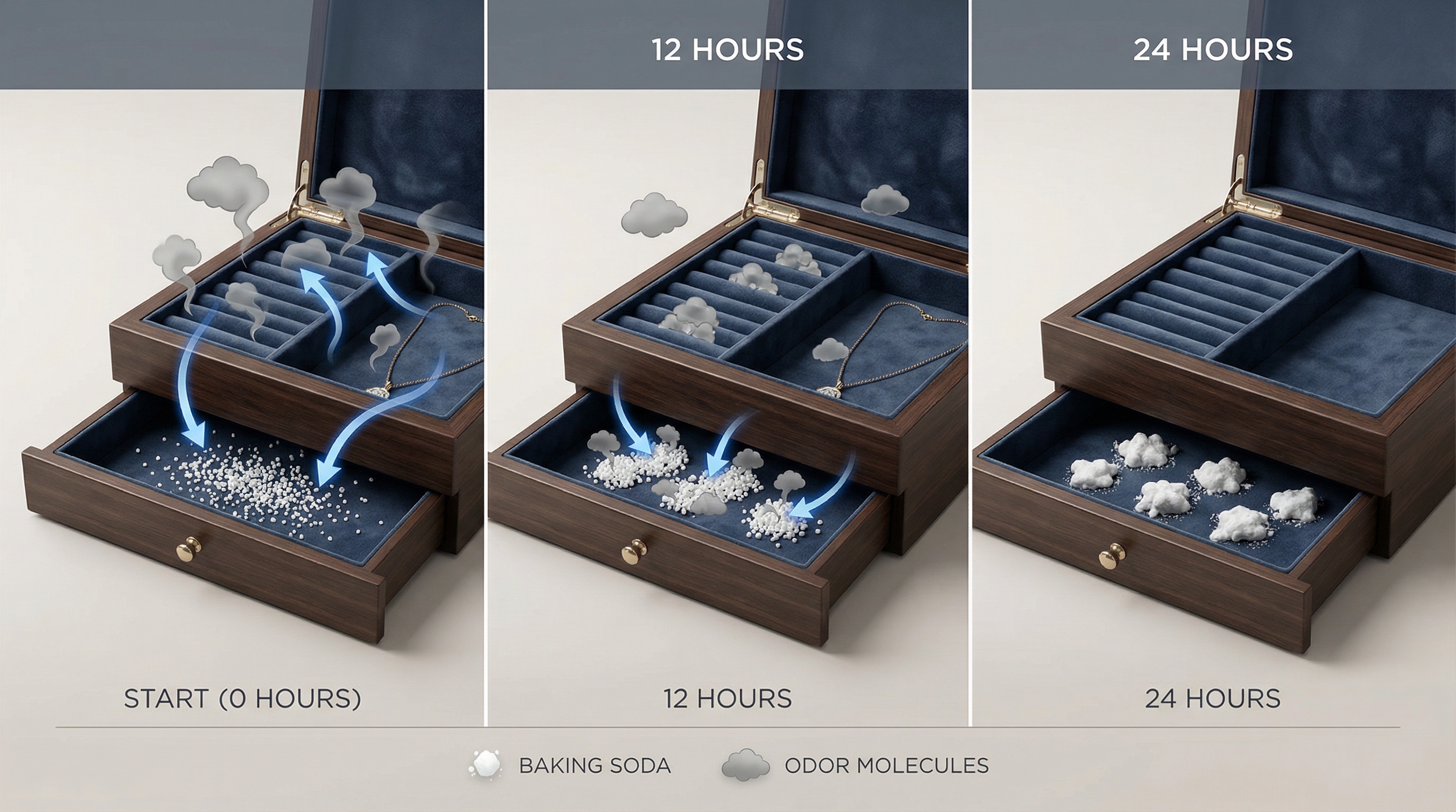 Why does my velvet box smell musty? A musty smell usually indicates that the box has been stored in a high-humidity environment or that the internal padding once got damp. Use baking soda or activated charcoal to neutralize the odor and move the box to a dry location.