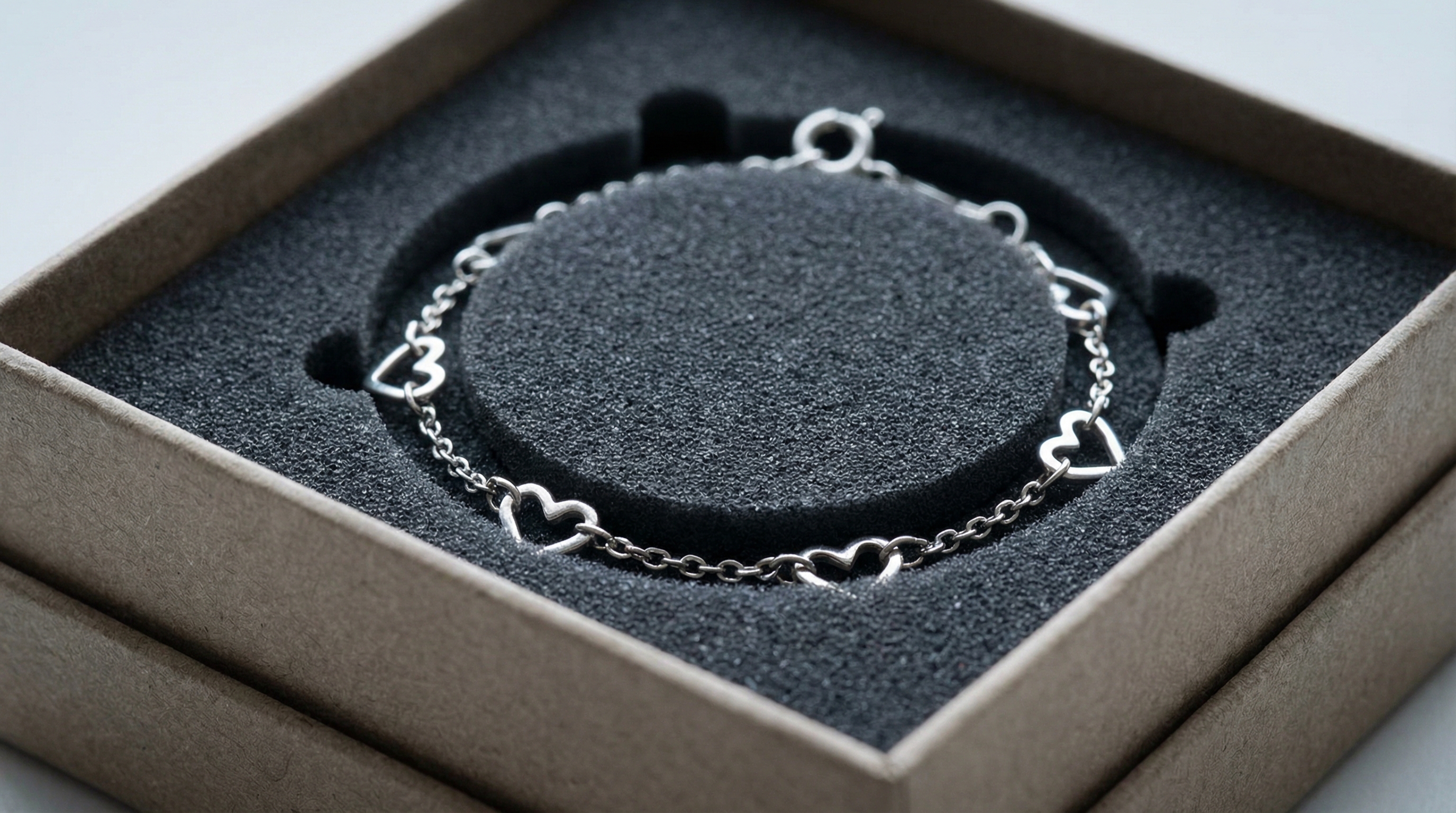Standard cotton fill often looks cheap and fails to secure the jewelry, whereas custom-cut foam or C-ring inserts hold the bracelet in a beautiful, upright position. This ensures that the first thing the customer sees is the most attractive part of the jewelry, such as the clasp or a central gemstone. Proper presentation within the box prevents the item from tangling or appearing messy upon arrival.