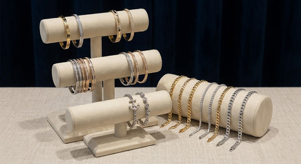 To display bracelets for sale effectively, you must focus on maintaining the shape of the item while grouping them by style or material for easy comparison. Utilizing a specialized how to display bracelets for sale technique, such as using T-bar stands or specialized ramps, ensures that the light hits every angle of the piece.