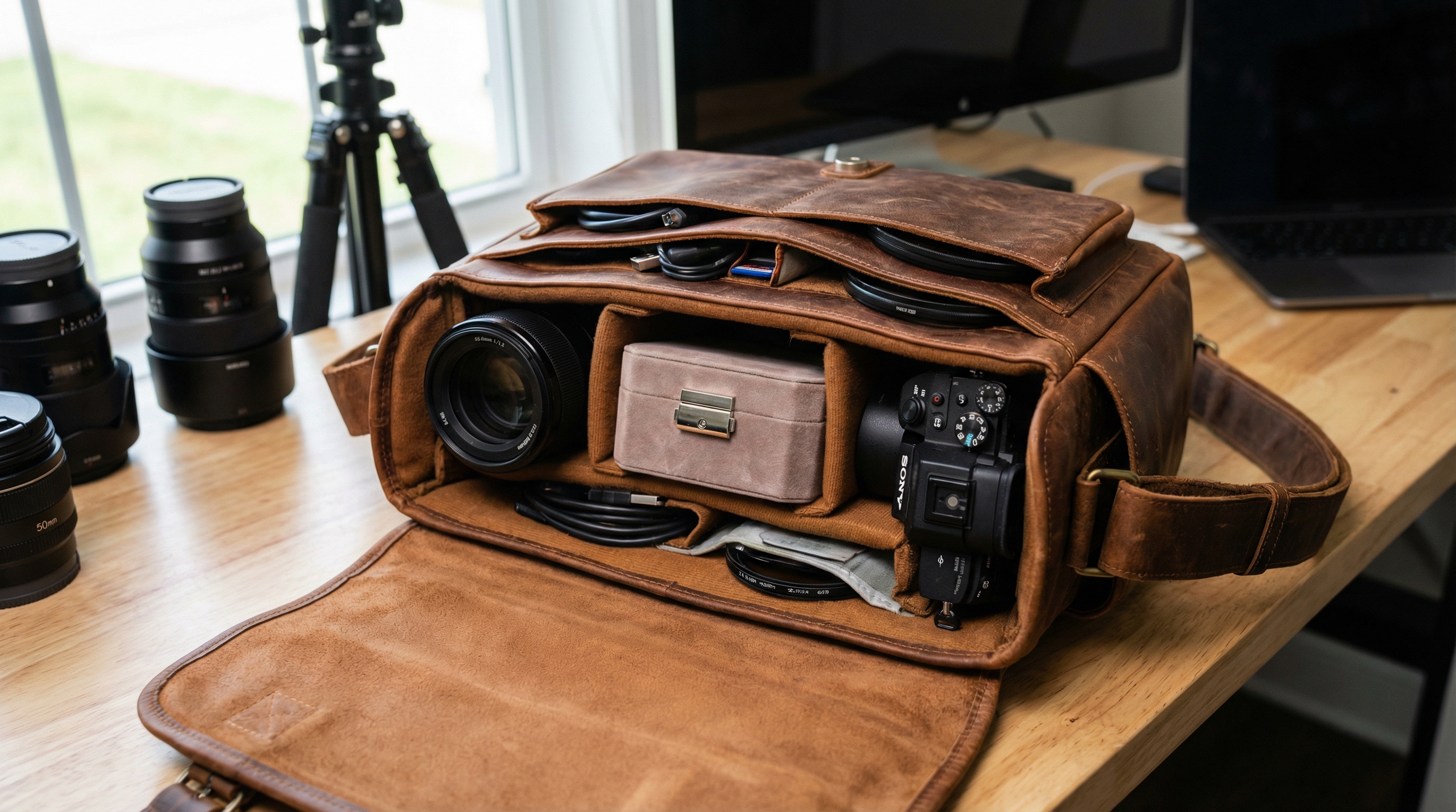 Camera bags are filled with small compartments and padding, making them the perfect “natural” environment to tuck away a small jewelry case.