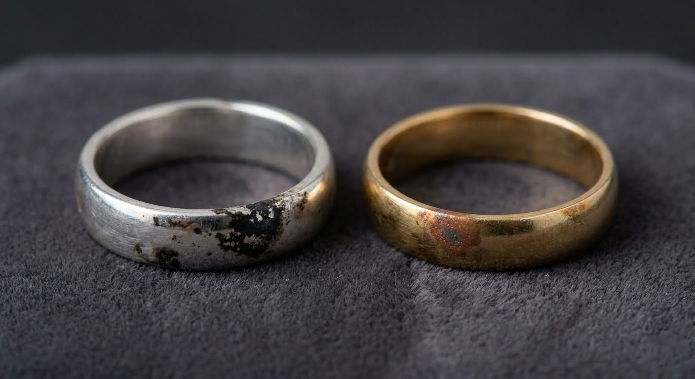 Silver reacts rapidly with sulfur to form black silver sulfide, while gold alloys tarnish based on their specific base metal content. Knowing the metal type helps you decide how to keep jewelry from tarnishing in jewelry box environments using specific linings.
