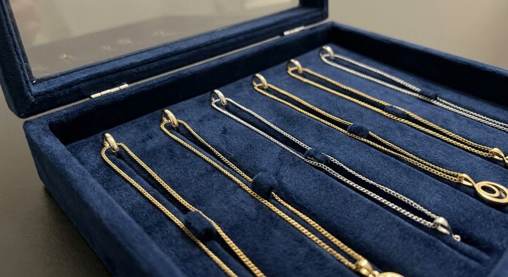 Here is the deal. A high-quality necklace box utilizes velvet slits or small hooks to keep the chain stretched out and immobile. This prevents the “coiling” effect that happens when a chain is laid flat on a smooth surface.