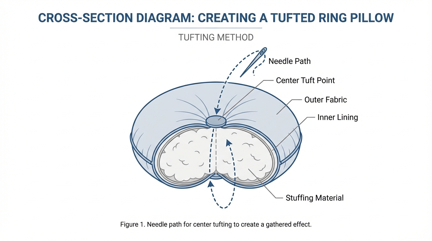 Key Takeaway: Tufting adds both visual depth and functional stability to any ring pillow design.