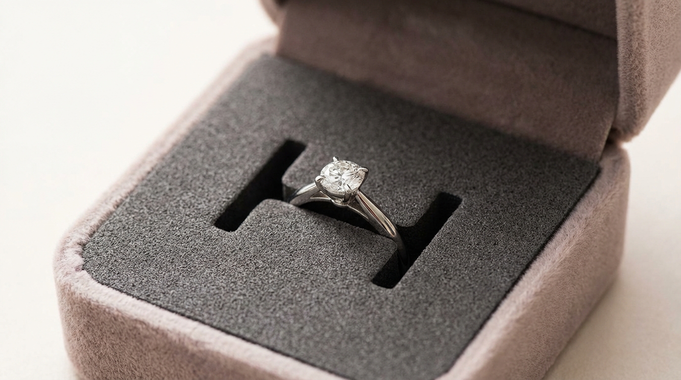 Not all foam is created equal when it comes to shipping security. We select specific densities that absorb shock while holding the ring firmly in place.