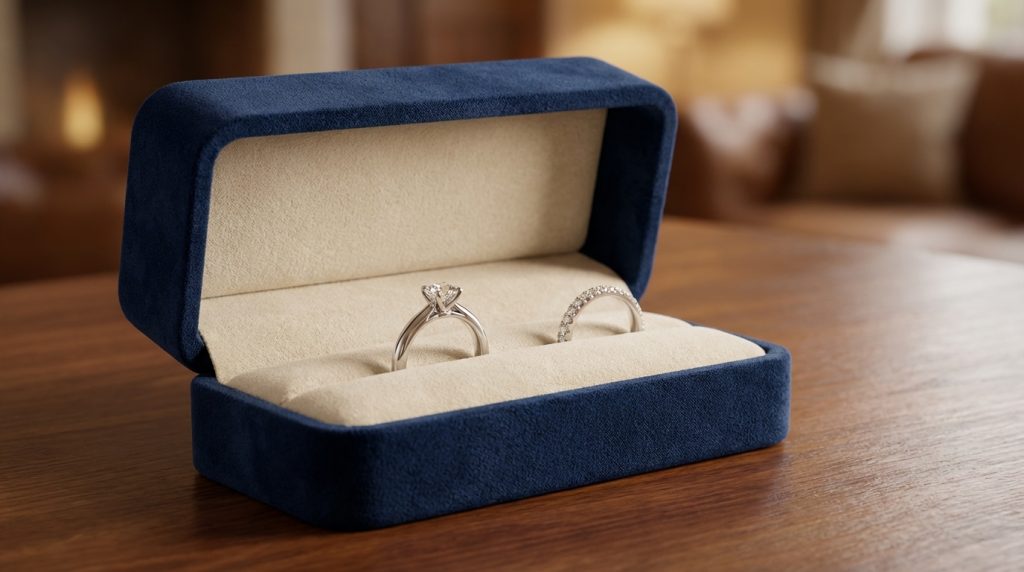 A double-slot box ensures that both rings are presented together during the ceremony. This prevents the awkwardness of handling two separate boxes and makes for better photography.
