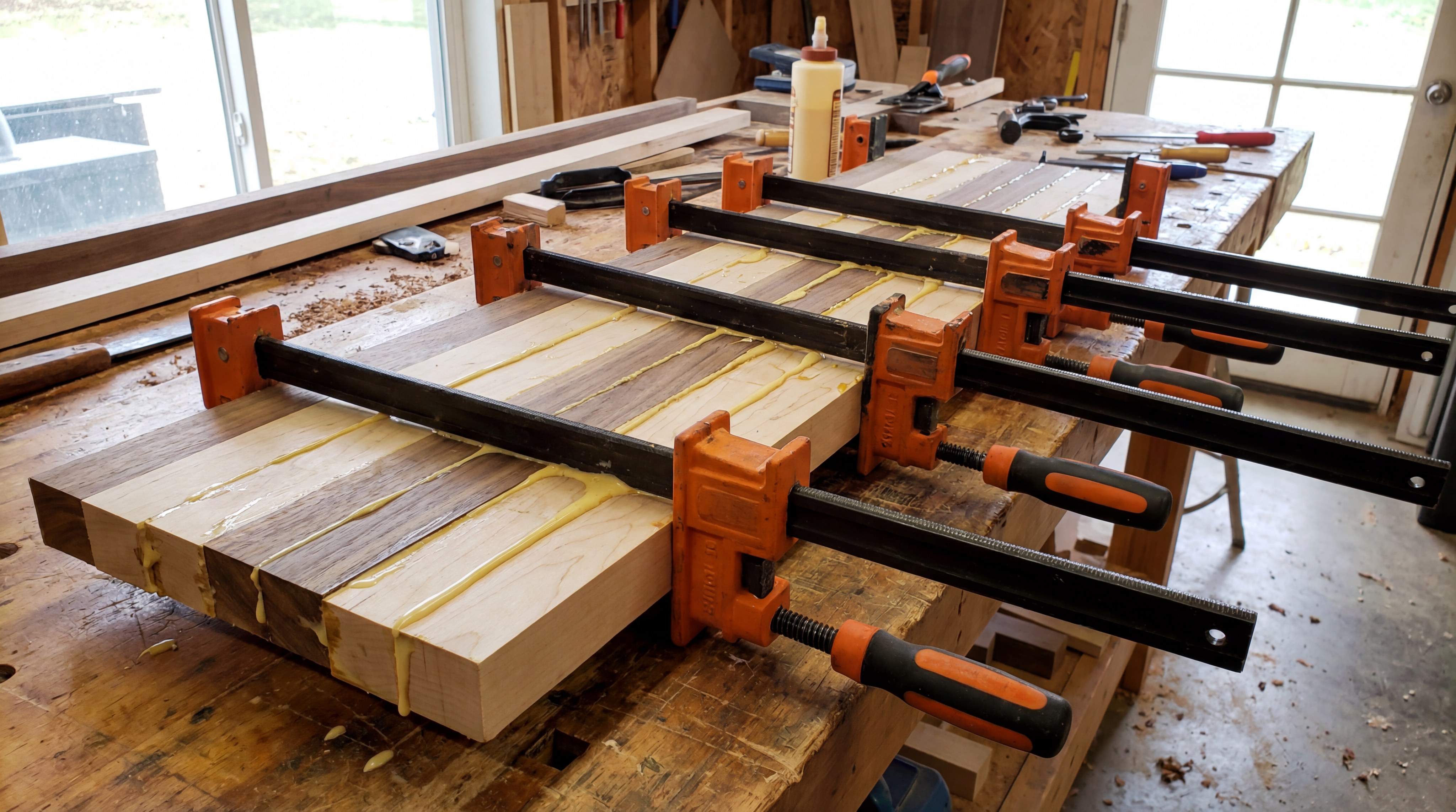 Clamping pressure must be uniform to prevent the wood layers from sliding out of alignment.