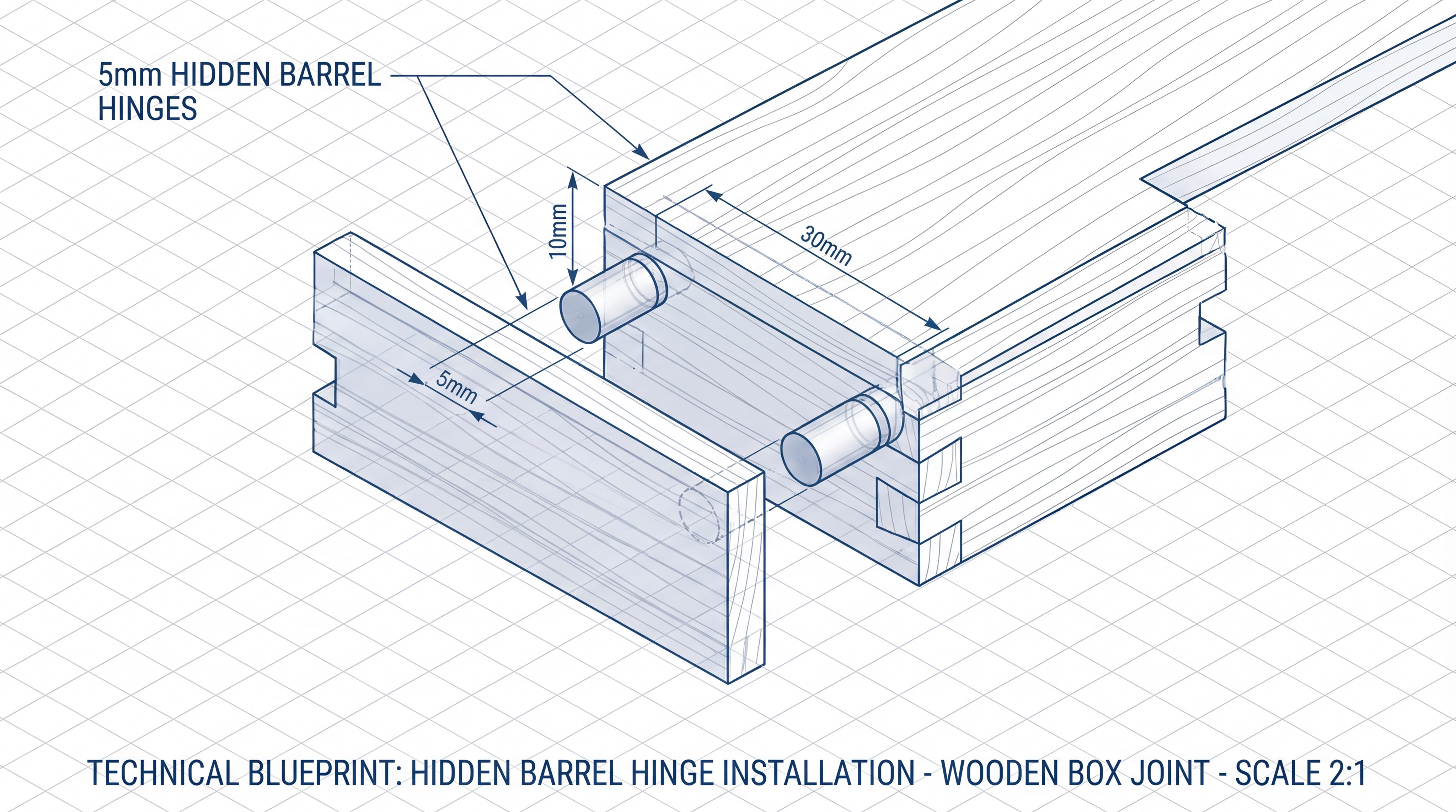 | Hardware | 5mm Barrel Hinges | Hidden movement |