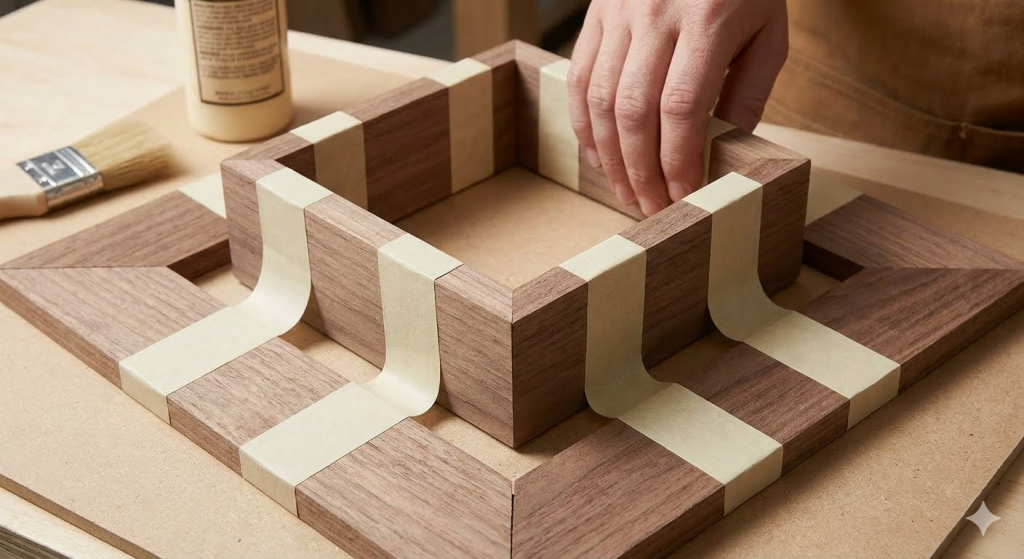 The best way to assemble the frame is using the “tape method” combined with high-quality wood glue for strong, seamless mitre joints. Following these steps helps you master how to make a wooden jewelry box.