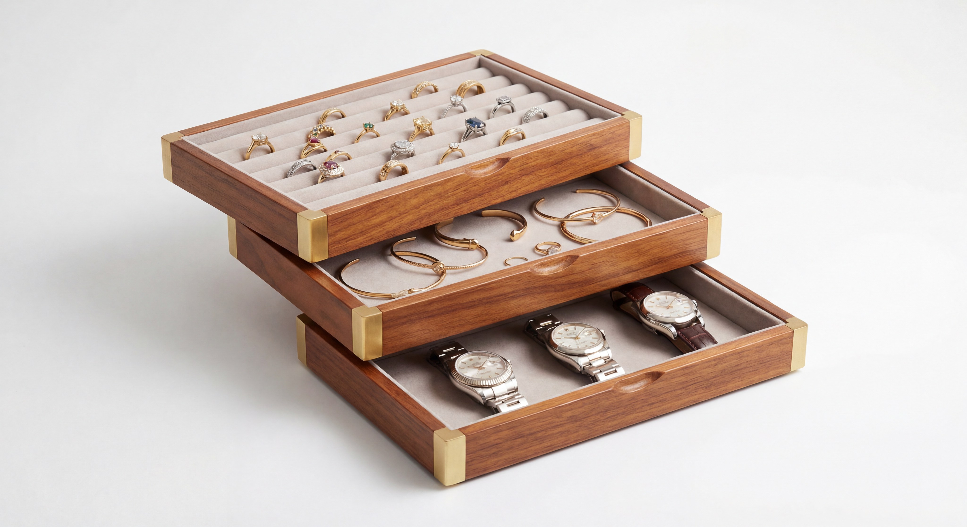 The outer frame of the insert must be slightly taller than the jewelry it contains. This creates a protective air gap that prevents the bottom of the top tray from crushing the items in the tray below.