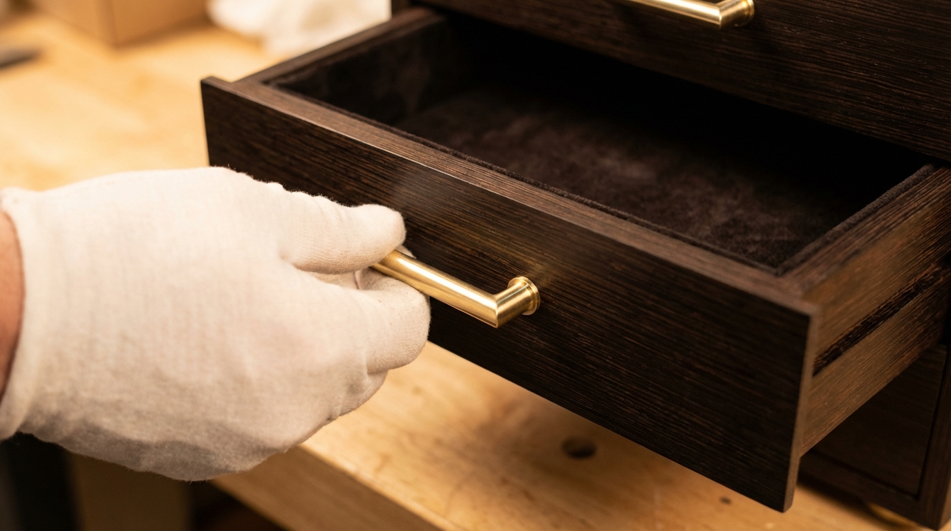 Key TakeawayPerfect drawer alignment transforms a collection of wooden parts into a high-end, cohesive jewelry storage solution.