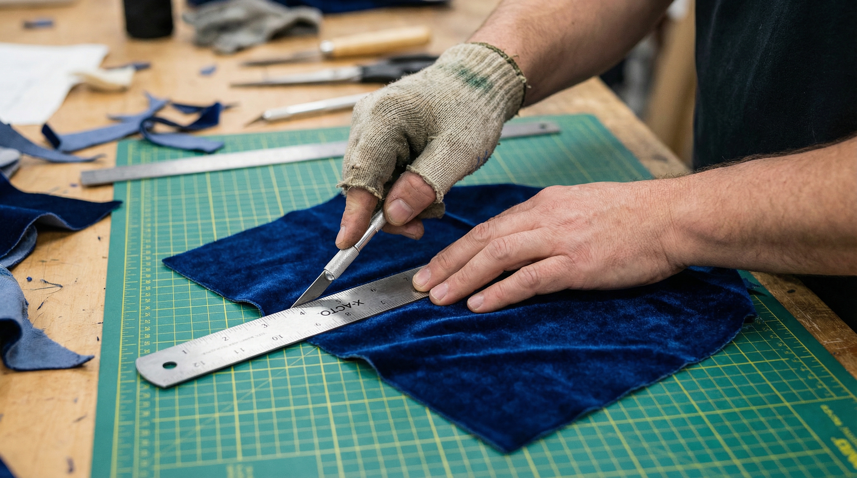 Velvet is highly sensitive to texture. Even a single grain of sawdust under the fabric can create a permanent “pimple” on the surface that ruins the luxury aesthetic.