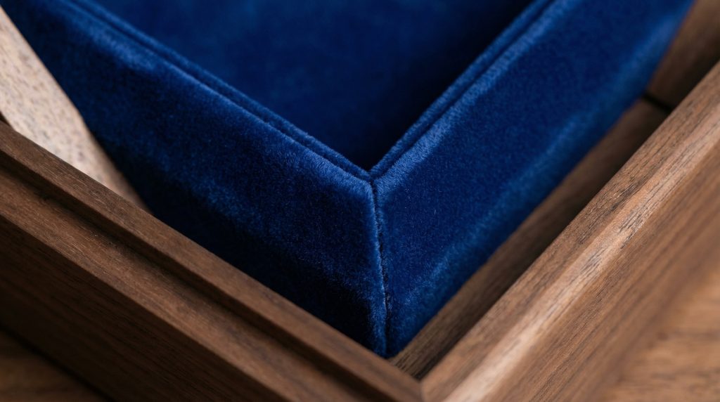 You need to measure each internal wall separately and cut velvet panels with a half-inch allowance for overlapping. Precision cutting is a central skill when learning how to make the inside of a jewelry box because gaps between panels are highly visible. Using a mitered cut for corners allows the fabric to meet seamlessly without creating bulky folds that interfere with dividers.