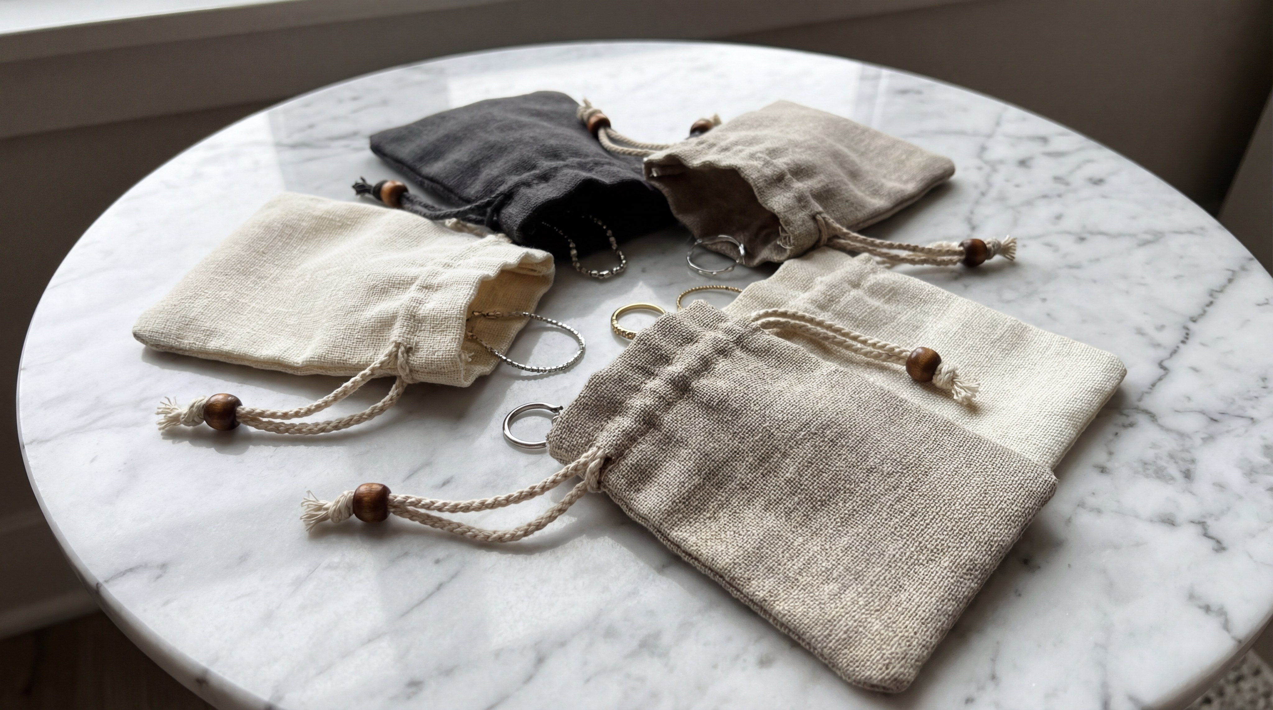 Key Takeaway: Linen pouches offer a reusable, tactile branding opportunity that enhances the perceived value of your jewelry long after the initial purchase.