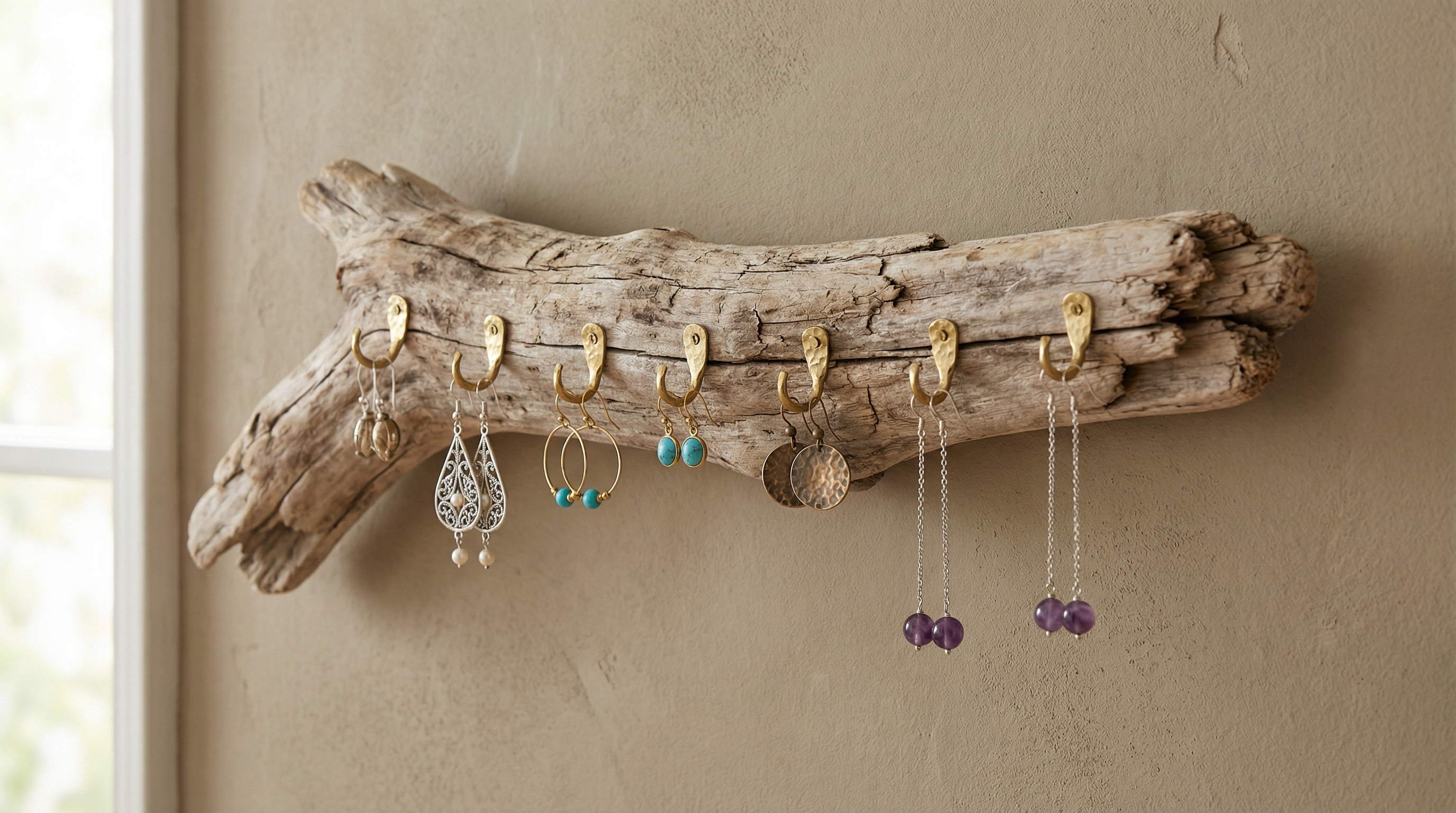 Key Takeaway: Driftwood organizers are perfect for those who want to combine artistic home styling with functional jewelry storage.