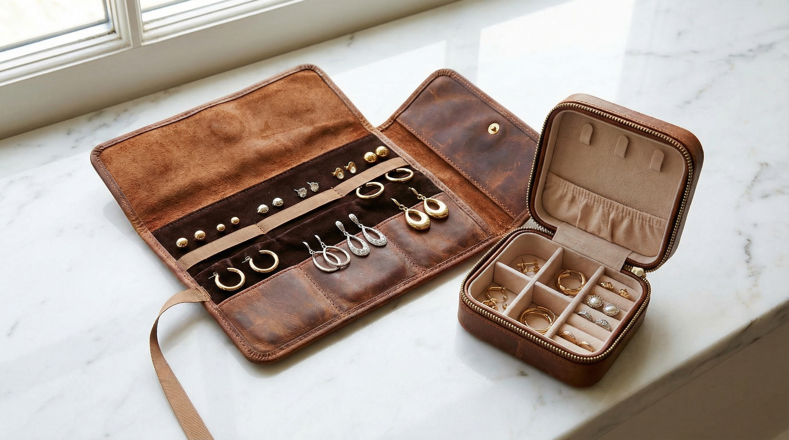 Selecting a compact travel roll or a leather case is the smartest way to manage how to organise earrings while on the go. These portable solutions use specialized strips and pouches to keep jewelry from shifting during transit. Proper packing prevents your favorite pairs from getting crushed or lost in your luggage.