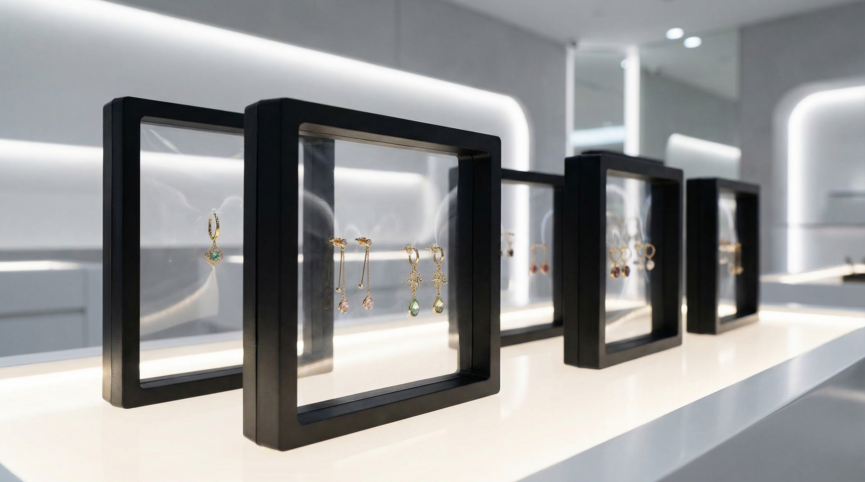Utilizing 3D floating display cases is a high-tech and protective method for how to organise earrings . These boxes use a flexible, transparent PE film to suspend your jewelry in mid-air within a frame. This creates a stunning visual effect while sealing the jewelry away from harmful environmental factors.