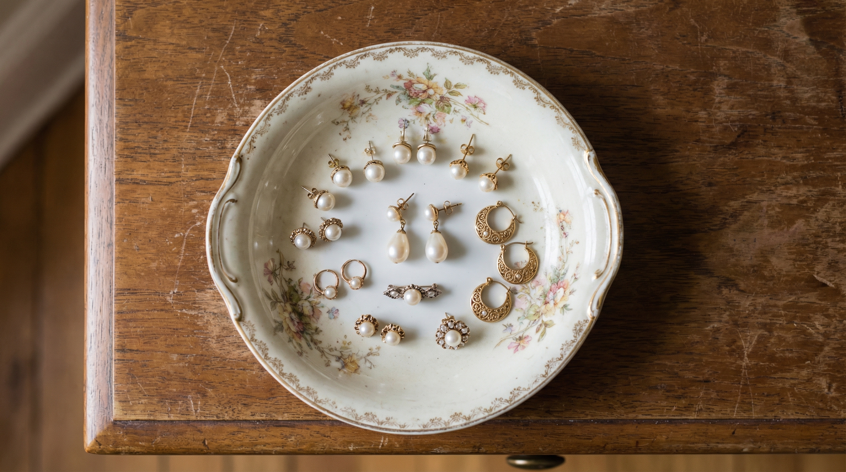 Using elegant porcelain dishes on your vanity is a decorative and accessible way for how to organise earrings . This method is perfect for the pieces you wear most frequently, keeping them within easy reach. It adds a touch of personal style to your dressing area while remaining functional.