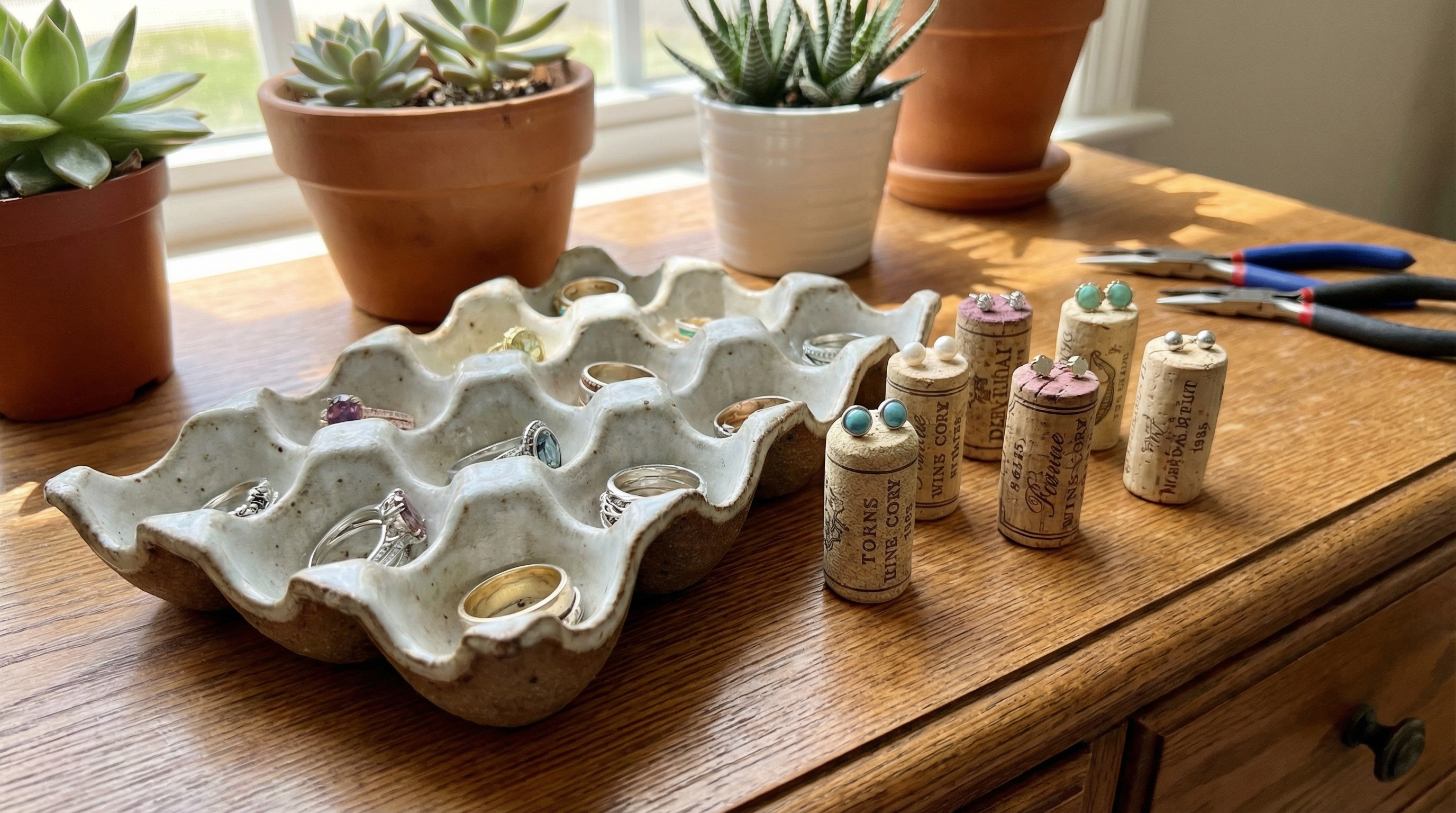 While not a long-term solution, an egg carton can serve as an excellent temporary sorting tray while you are mid-reorganization. The individual cups are perfectly sized for cocktail rings or large statement earrings that might otherwise roll around.