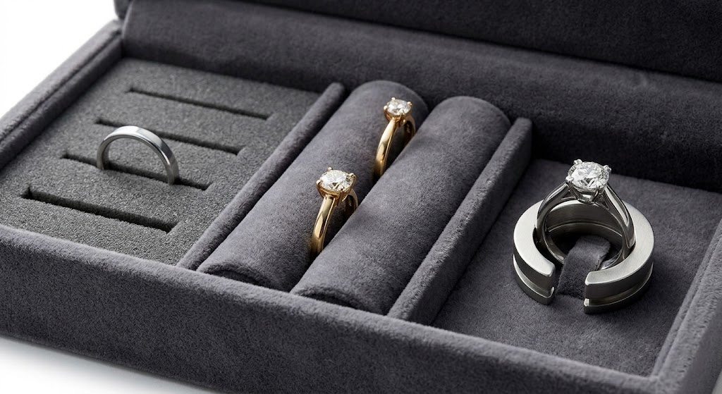 Jewellery box inserts for rings are designed to keep the band stable while ensuring the diamond or gemstone remains the focal point. These structures are essential for preventing the jewelry from sliding and scratching the interior of the box lid.
