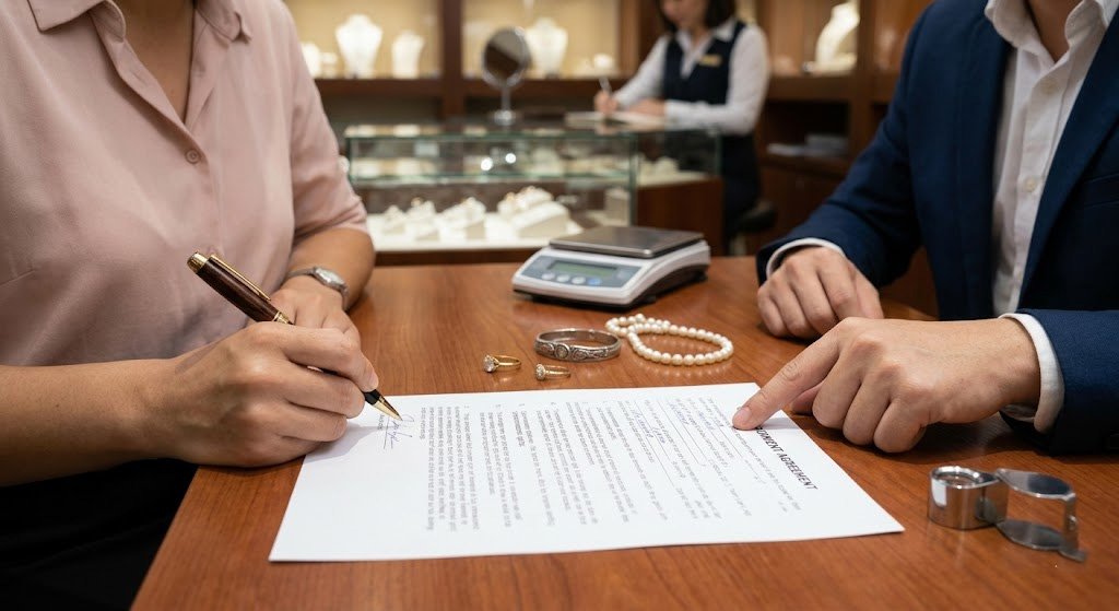 In a standard agreement, the shop acts as an intermediary that provides marketing, insurance, and professional display services. The original owner retains legal title to the jewelry until the moment a transaction is completed. Key features include: