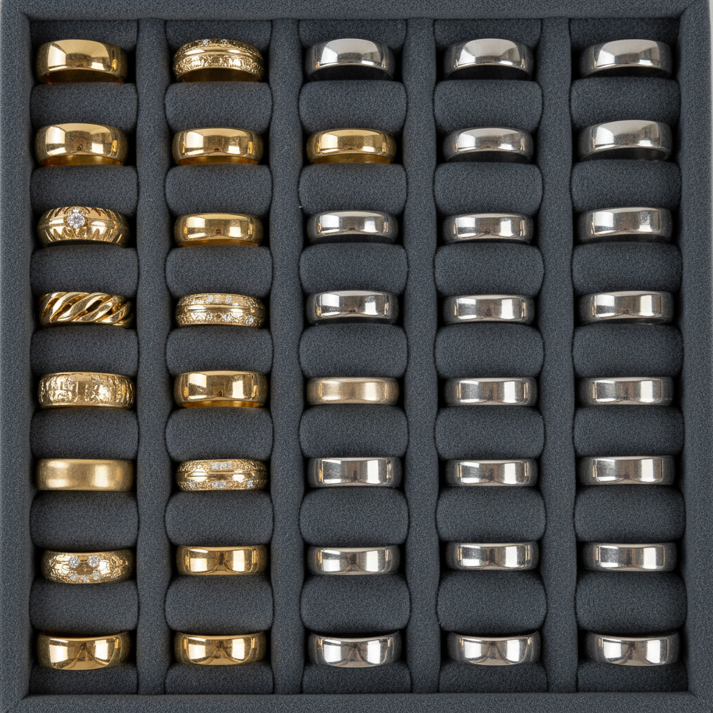 Here’s the deal… when you toss multiple rings into a single pouch, the pressure from the vault tray’s movement can cause thin bands to lose their circular shape. You should use high-density foam inserts that hold each ring upright and isolated from its neighbors.