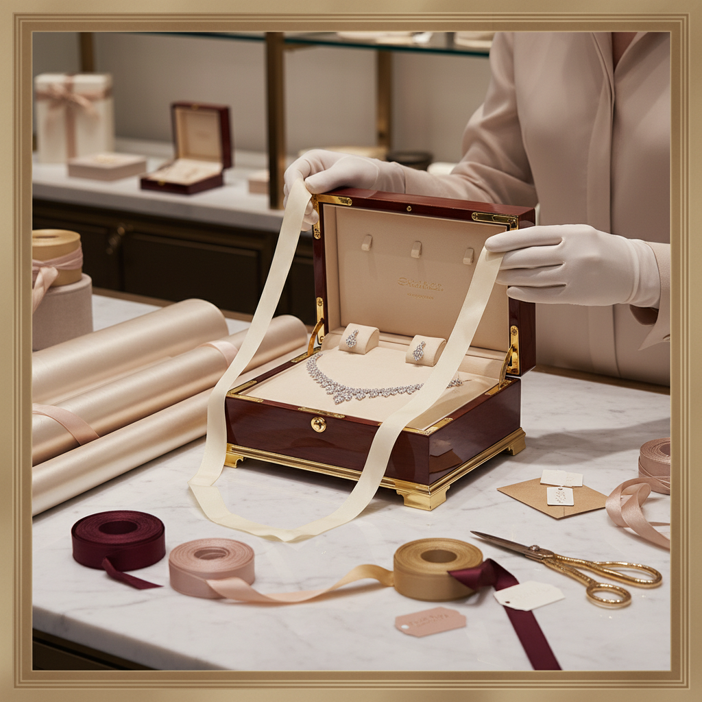 Double-face satin and grosgrain ribbons are the most effective styles for how to wrap a jewelry box because of their luxurious texture. Satin provides a glossy finish that catches the light in a showroom, while grosgrain offers a sturdy, ribbed texture that stays knotted. You must ensure the ribbon width is proportional to the box to avoid overwhelming the presentation.