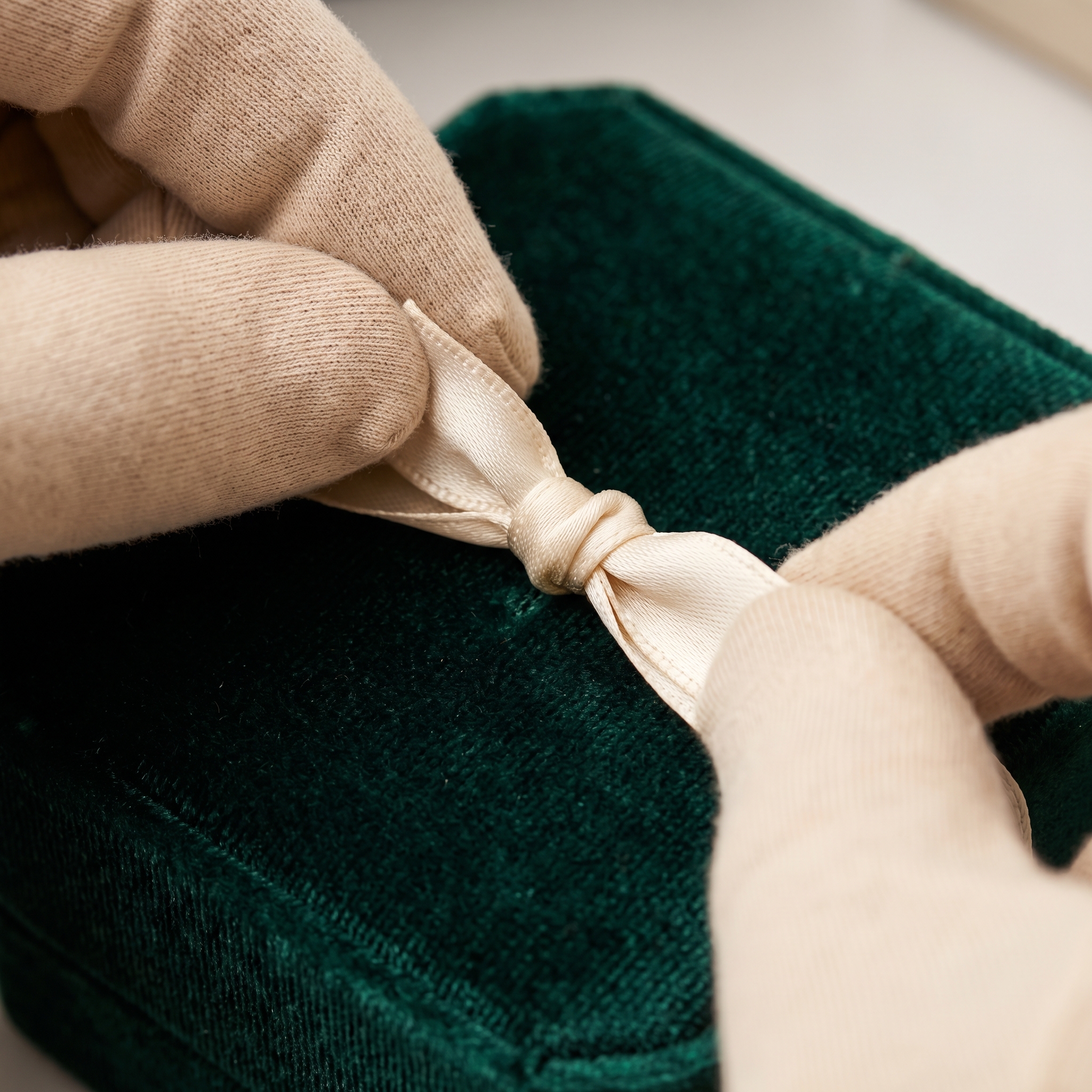 A perfectly executed bow acts as a physical representation of the precision found within the jewelry piece itself.