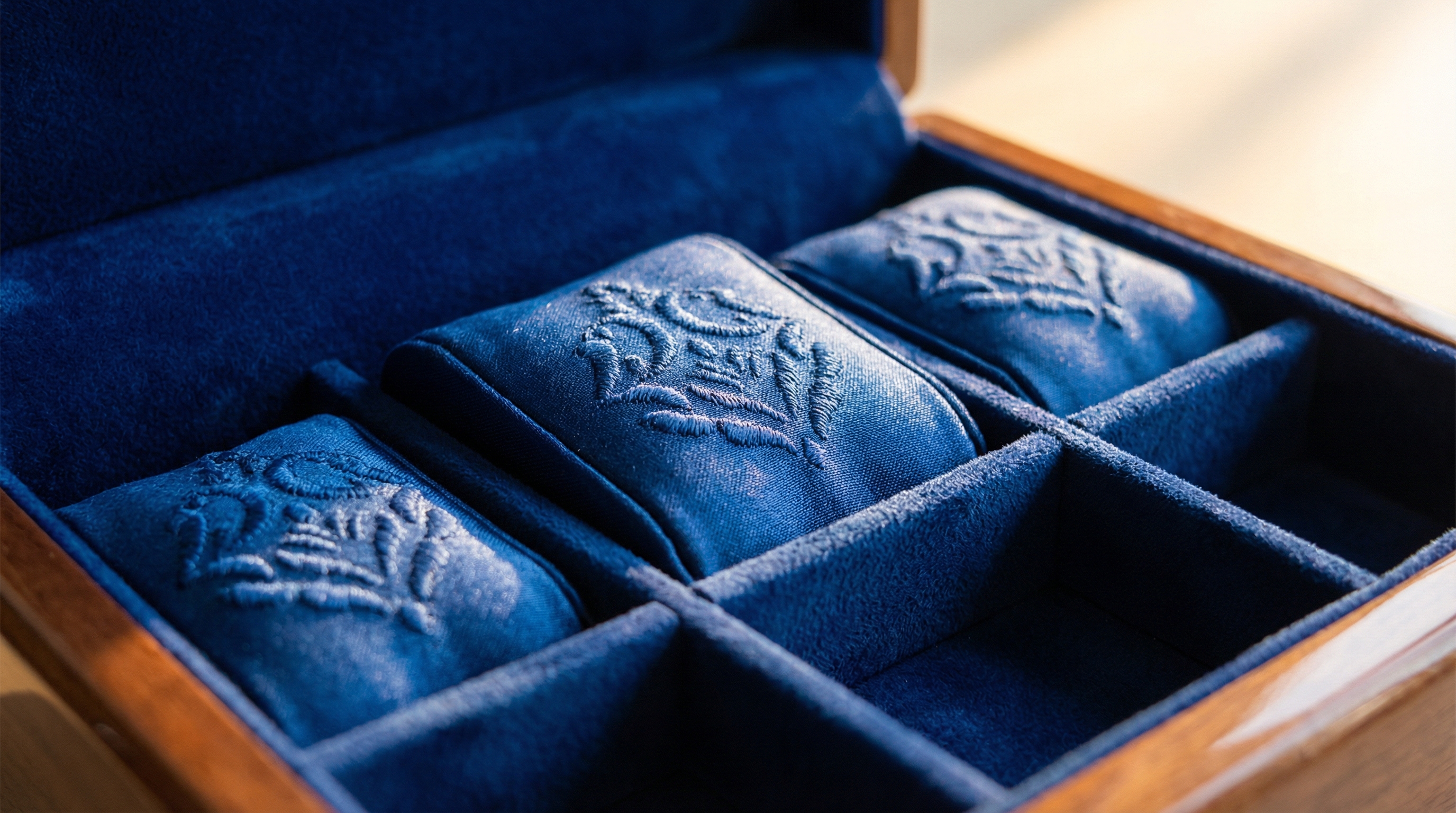 To keep your liners looking fresh, store your custom jewelry box inventory in a cool, dry place away from direct sunlight, which can fade both natural and synthetic dyes. If a spot clean is necessary for microfiber, use a very lightly dampened cloth with a drop of pH-neutral soap.
