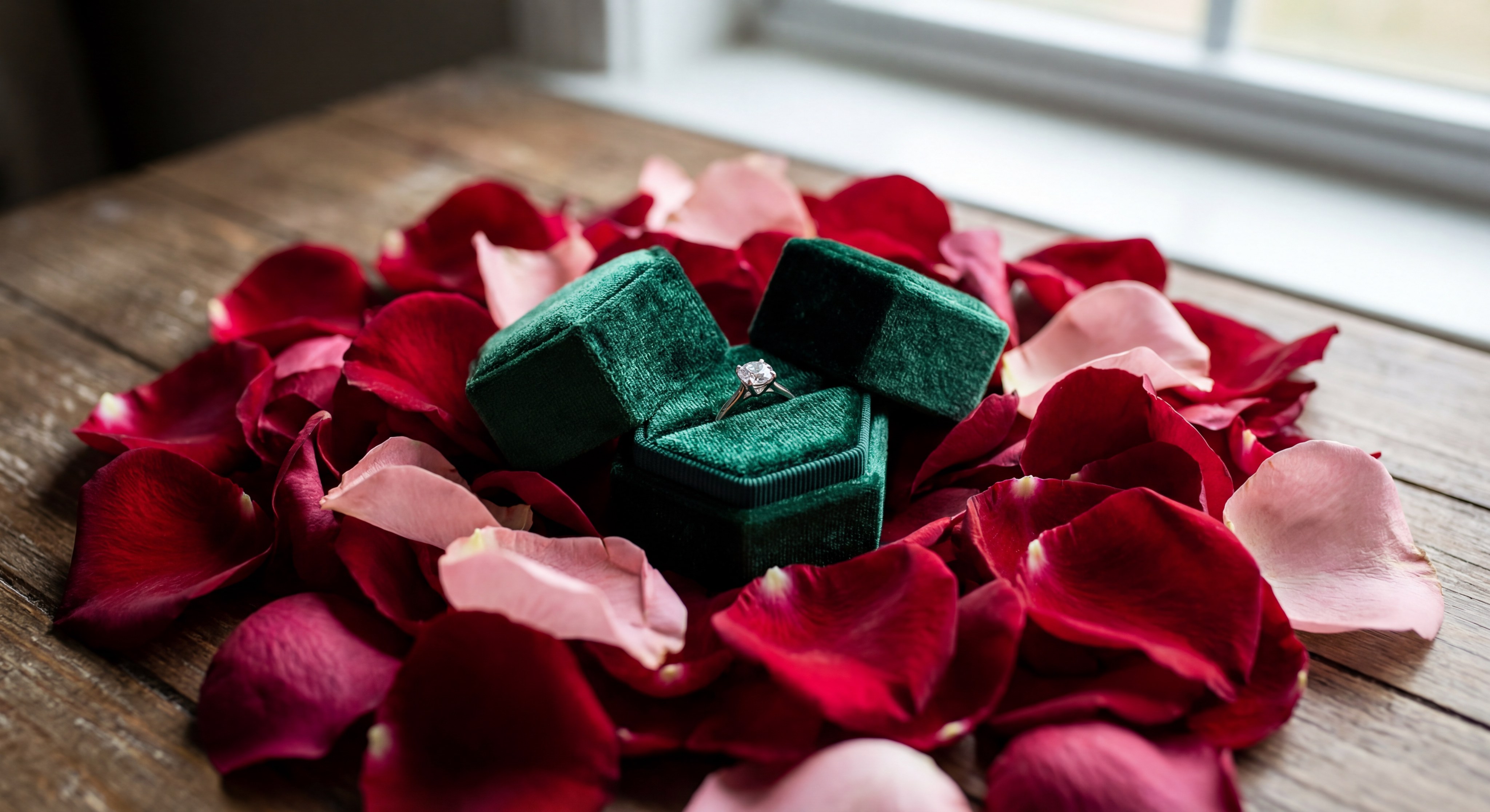 A slim, hexagonal, or heart-shaped velvet box is easier to conceal than a traditional square box. This helps maintain the element of surprise until the exact moment you are ready.