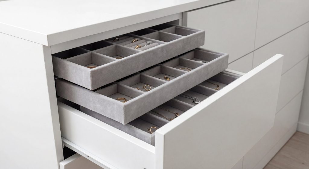 - Hidden Storage: These trays are designed to fit perfectly inside standard dresser drawers for a clean, clutter-free look.