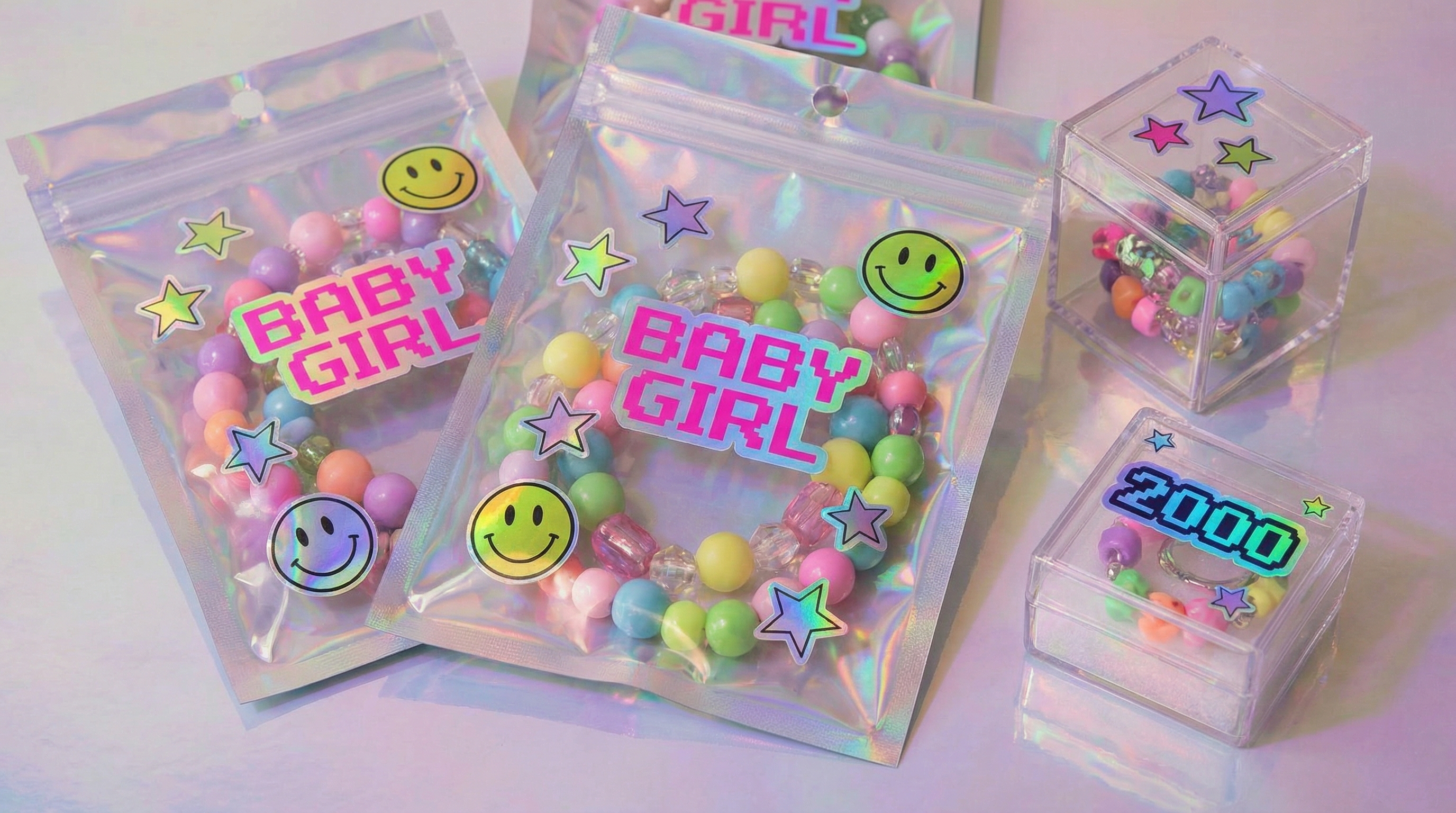 - Playful typography and Y2K icons like stars or butterflies.