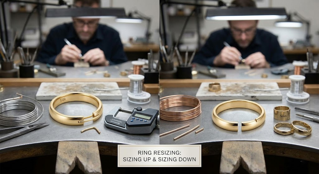 A wide cigar-style band requires significantly more heat and solder than a delicate 2mm wire band. Here is the thing: the wider the ring, the more difficult it is to maintain a seamless look after the resize.