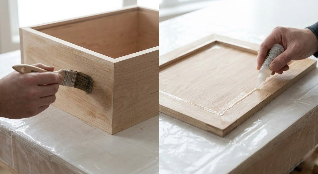 Key Takeaway: The sealing process is the insurance policy for your project, preventing expensive resin spills. A vintage wash offers a more professional boutique look than standard acrylic paint by highlighting natural wood textures.