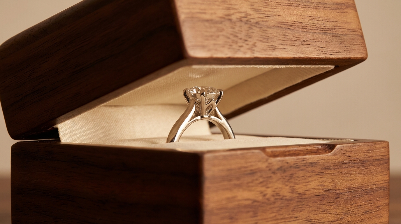 The proportions of the box act as a frame for the jewelry inside. When the box is scaled correctly, it directs the viewer’s eye toward the brilliance of the stone rather than the empty space around it.