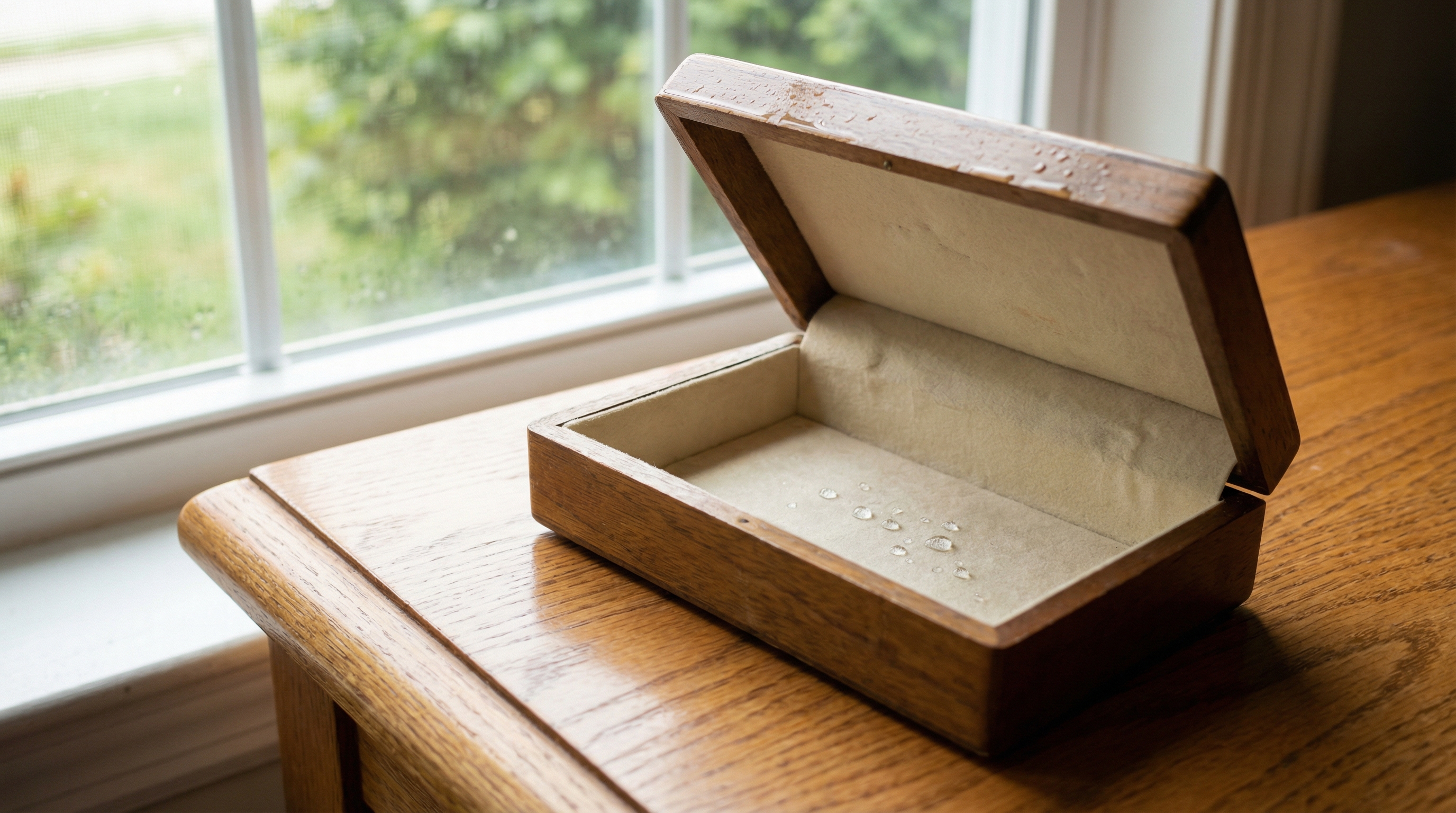 Excessive moisture can seep through the velvet and weaken the glue holding the box together. This leads to peeling edges or structural warping over time.