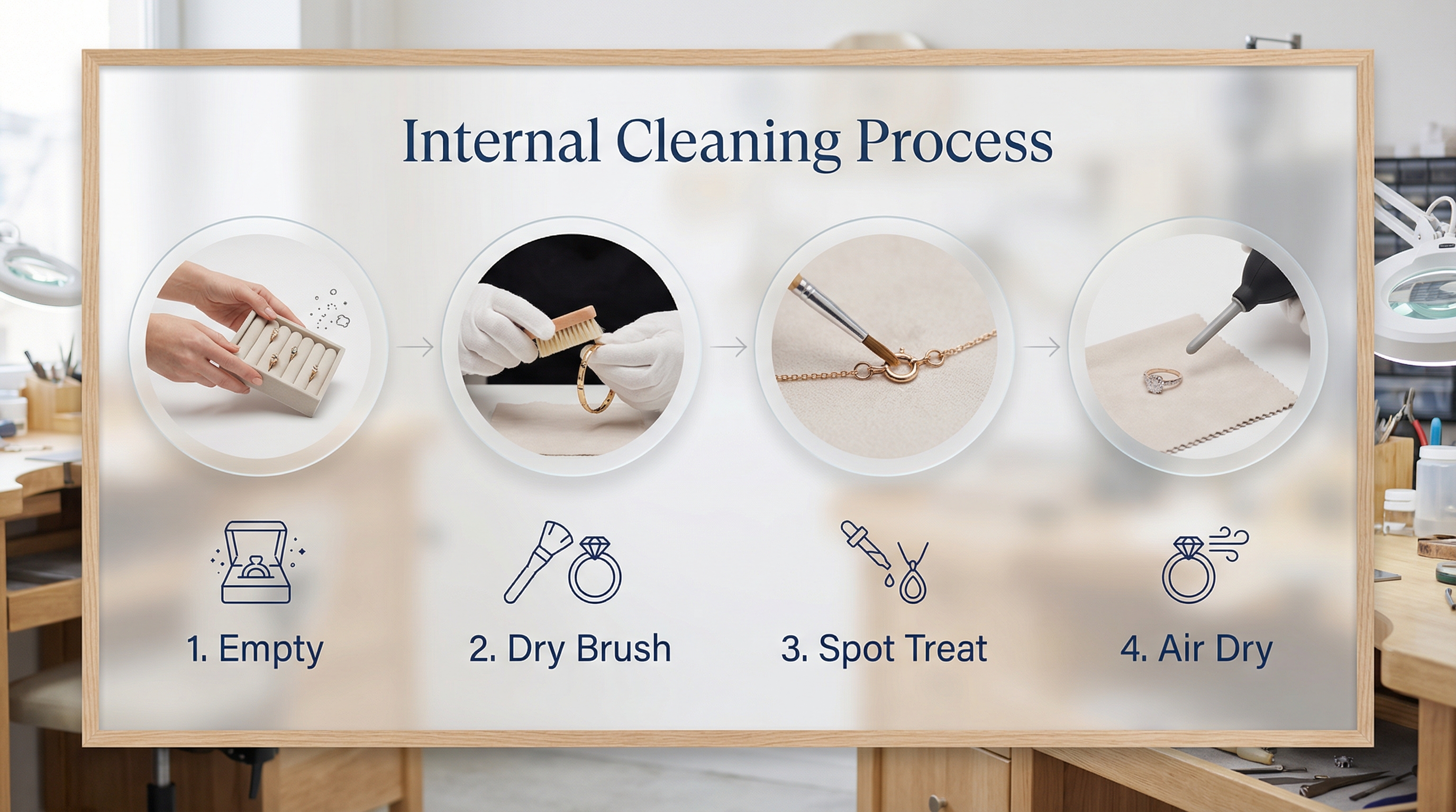The professional process involves emptying the box, dry brushing, spot treating, and thorough air drying. Following a logical sequence is the secret to how to clean the inside of a jewelry box without causing damage. Skipping steps often leads to trapped moisture or streaks on the velvet surface.